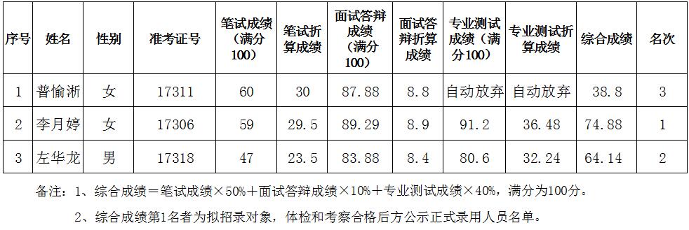 云南民族中学2017年教师招聘综合成绩(教务员)公示