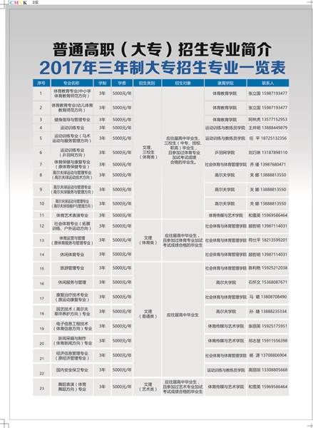 云南体育运动职业技术学院2017年招生简章(分专业介绍)