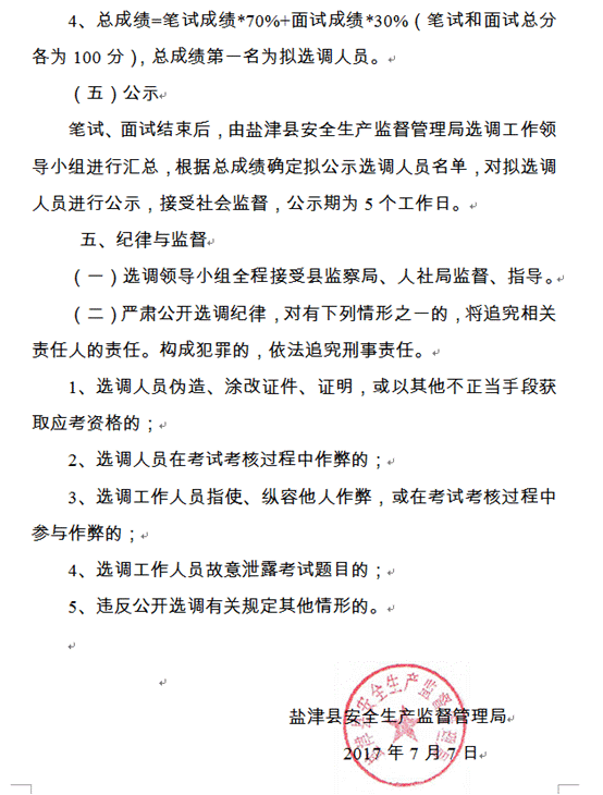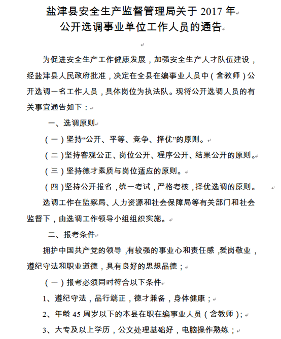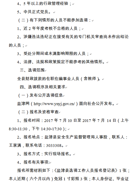 2017年昭通市盐津县安监局选调事业单位工作人员通告