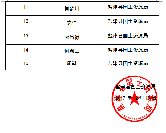 昭通市盐津国土局2017年招聘临时工作人员名单公示