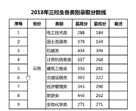 云南国土资源职业学院2018年录取分数线
