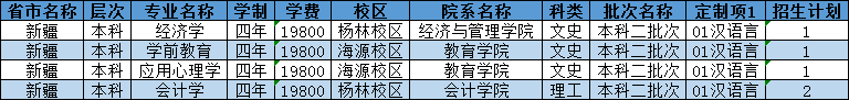 云南师范大学商学院2018年招生计划信息(新疆) 国标码:13330 新疆代码:3469 普通类招生计划