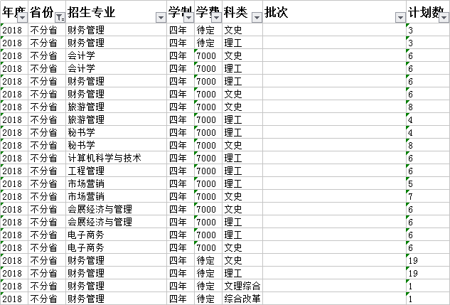 云南财经大学2018年本科分省招生计划表(云南省)