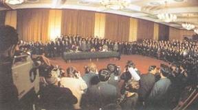 图三:1984年12月19日,中英两国政府《关于香港问题的联合声明》在北京签署。英国同意于1997年归还香港。联合声明圆满解决了中国恢复对香港行使主权的问题,也为香港的长期繁荣和稳定提供了坚实的基础。