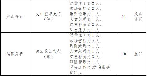 | 14 | 州市支行岗位 | 党务工作岗(综合服务岗) | 1.年龄35周岁(含)以下,大学本科及以上学历(县域支行可放宽到专科); |