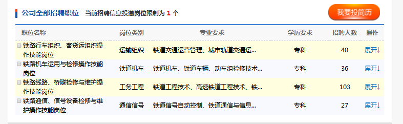 本次招聘岗位均为铁路运输生产一线操作技能岗位,具体招聘岗位、专业要求、人数和工作单位等见附件。