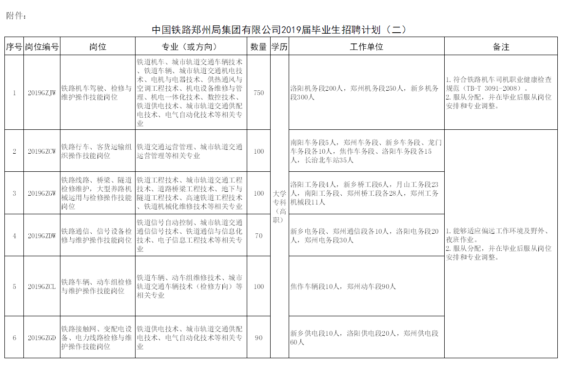 根据企业发展对人才的实际需求,中国铁路郑州局集团有限公司拟招聘2019届全日制普通高等院校大专(高职)学历毕业生,具体事宜公告如下: