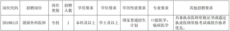 因工作需要,经医院研究同意在大理大学第一附属医院2019年公开招聘(第二批)编制外工作人员岗位计划中增加“颌面外科医师”岗位计划1名,现补发公告,具体招聘岗位及条件如下: