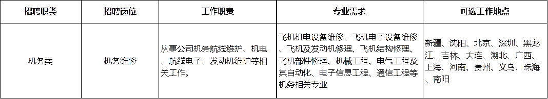 请点击相应职位投递简历: 岗位及报名网址:https://job.csair.com/showactive?id=1001J1100000001O9858