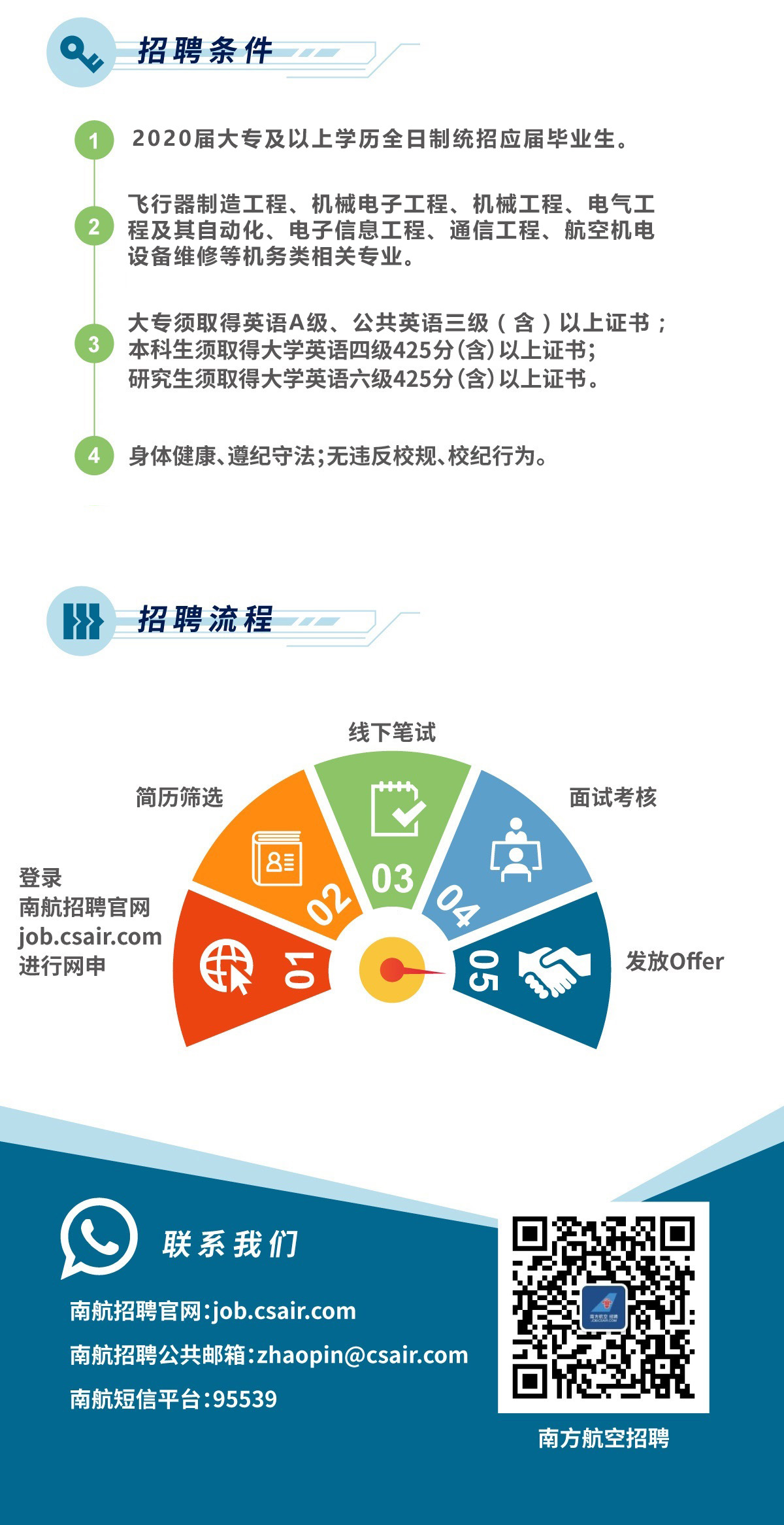 南方航空2020届机务类实习生招聘简章 备注:此通道为南方航空2020届机务实习生招聘简历投递通道,招聘对象仅针对中国民航大学、中国民航飞行学院、沈阳航空航天大学、广州民航职业技术学院、新疆职业大学(定向新疆)2020届机务相关专业毕业生。其他院校站点简历通道暂未开通,敬请各位应聘者注意!
