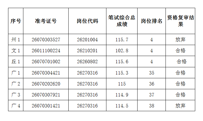 根据《2019年文山州事业单位公开招聘工作人员通告》、《2019年文山州事业单位公开招聘工作人员笔试成绩最低控制分数及资格复审有关事项的通告》要求,7月19日全州事业单位公开招聘工作人员资格复审第2次递补工作已结束,现将资格复审结果名单公布如下: