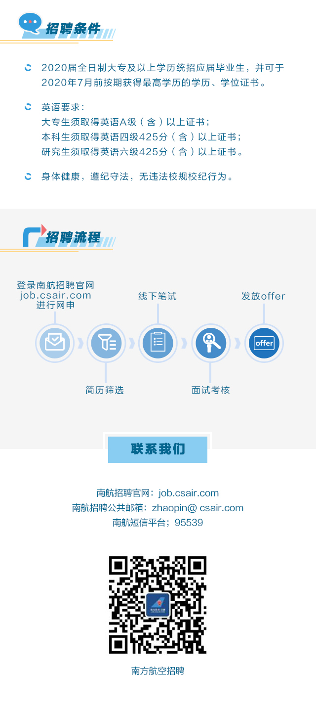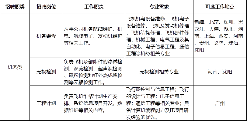南方航空2020届机务岗位秋季校园招聘