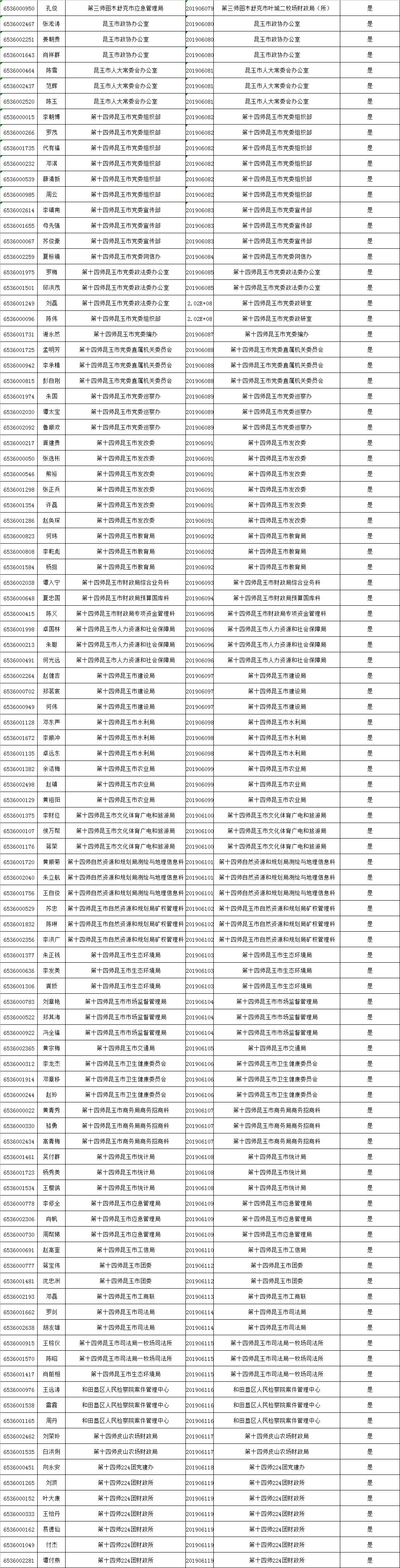2019年新疆生产建设兵团南疆师市面向昭通市招录公务员资格复审、递补、调剂名单