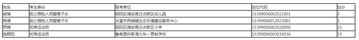 昭通市2019年事业单位第二批招聘政策性加分情况公示