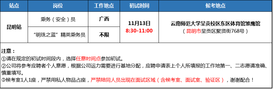 2019年乘务(安全)员秋季招聘计划(含明珠之蓝)(昆明站)
