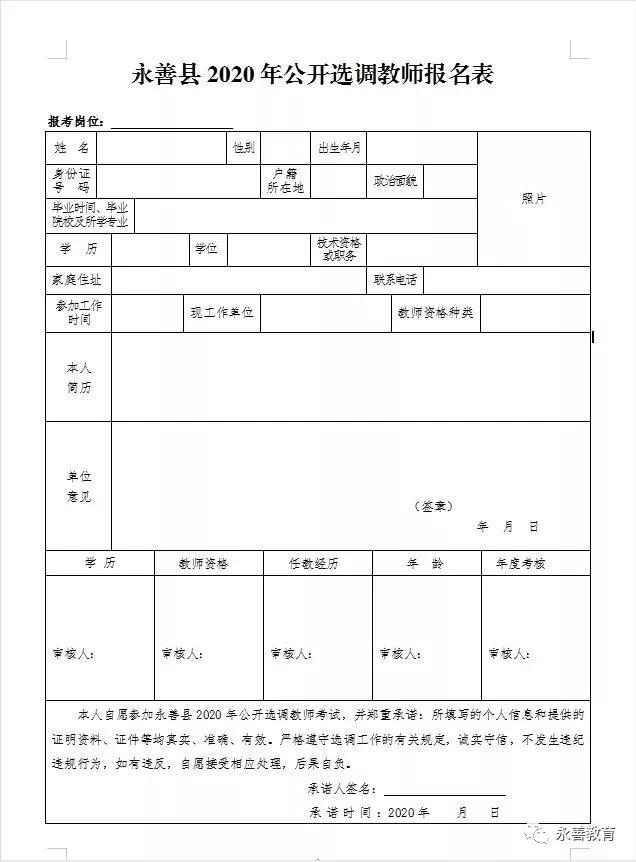 附件4:《永善县2020年公开选调教师报名表》