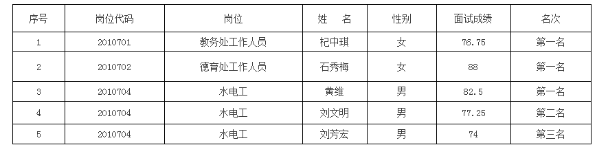 玉溪一中2020年公开招聘编外人员拟聘用人员公示 根据《玉溪市2020年市级机关事业单位公开招聘编外人员公告》,经报名、资格审查、考试、体检、考察等程序,确定以下拟聘用人员,现公示如下: