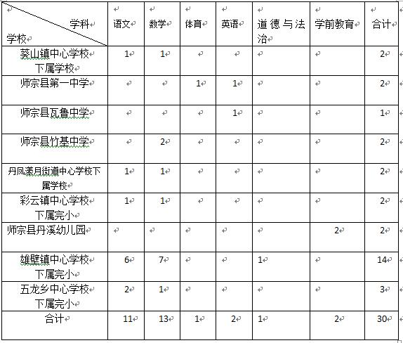 师宗县教育体育局2019年度高校毕业生就业见习岗位