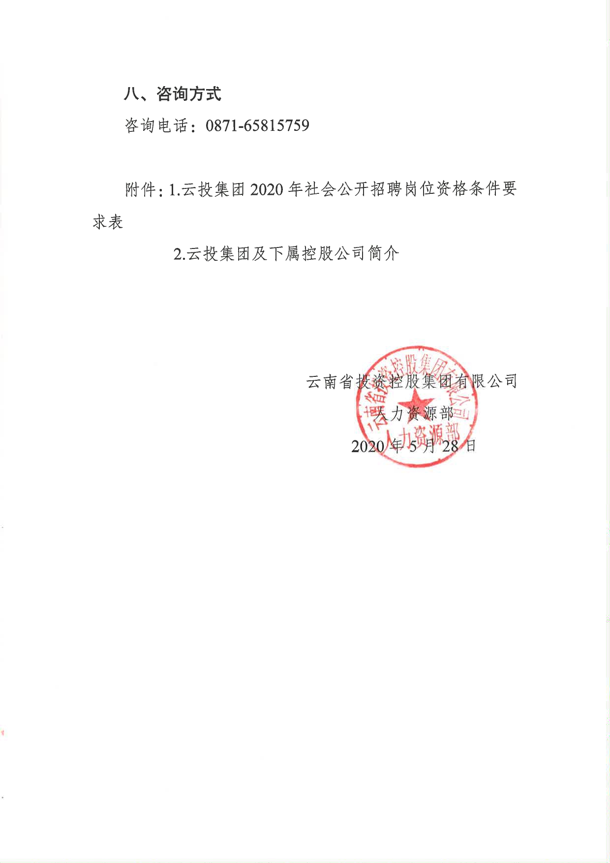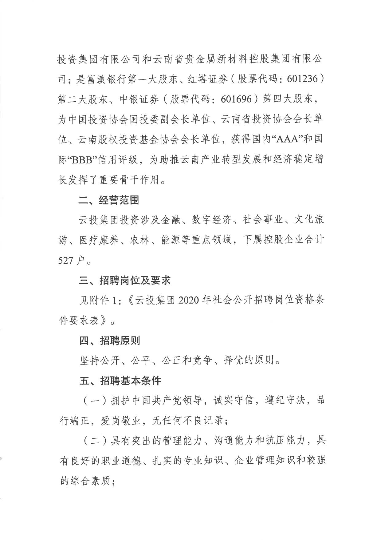 云南省投资控股集团有限公司2020年社会公开招聘公告