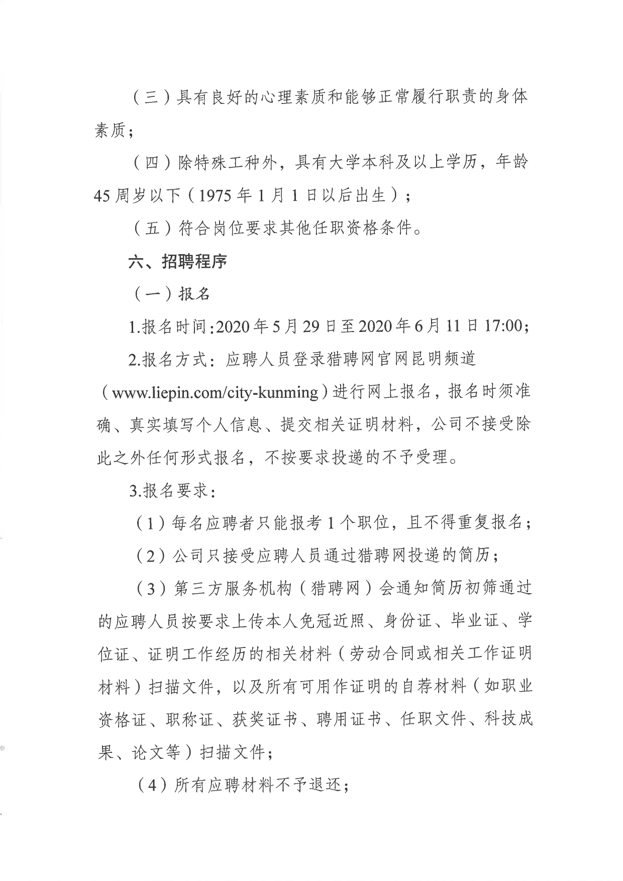 附件1:云投集团2020年社会公开招聘岗位资格条件要求表.xlsx