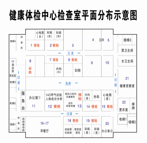 附图-2:健康体检中心检查室平面分布示意图
