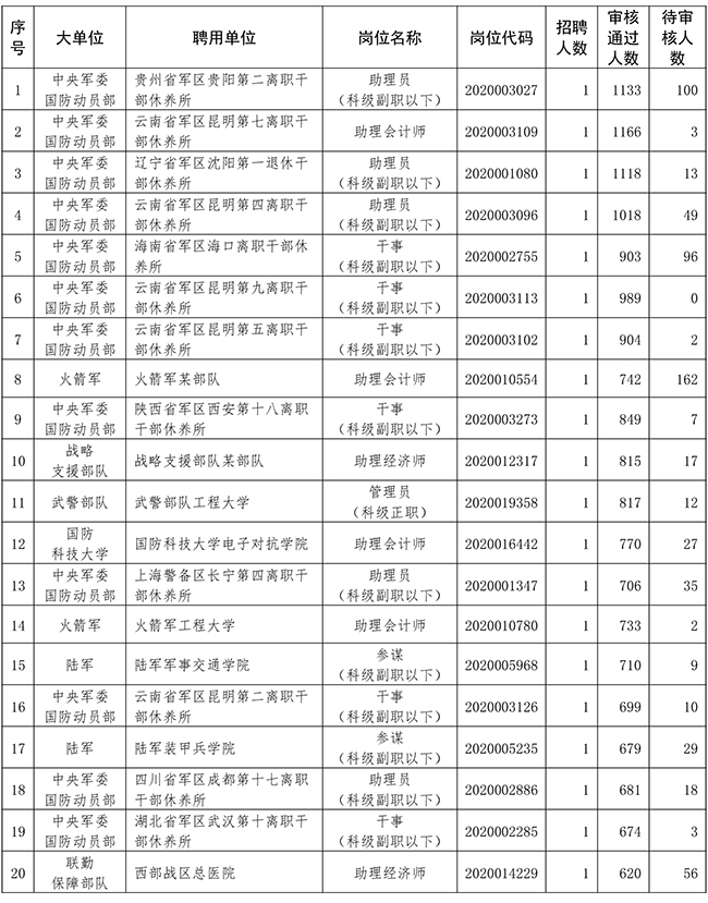2020年全军面向社会公开招考文职人员网上报名有关情况