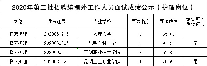 【更正】2020年第三批招聘编制外工作人员面试成绩公示(护理岗位)