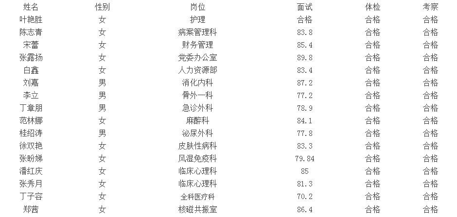 根据《玉溪市人民医院2020年提前招聘工作人员方案》,经报名、资格审核、面试、体检考察合格,确定了2020年提前招聘工作人员拟聘用人员。现公示如下: