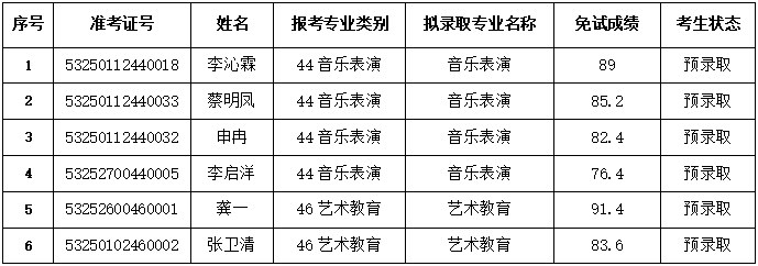 昆明传媒学院2025年专升本招生免试批次拟录取考生名单公示 现将2025年昆明传媒学院普通高校专升本免试批次拟录取考生名单予以公示,公示期自2025年4月26日起至4月29日止。公示期间,若有异议,可以通过电话、信函、来访等方式实名向学校招生办公室反映。电话:0871-68876543、68306444。
