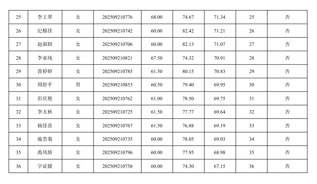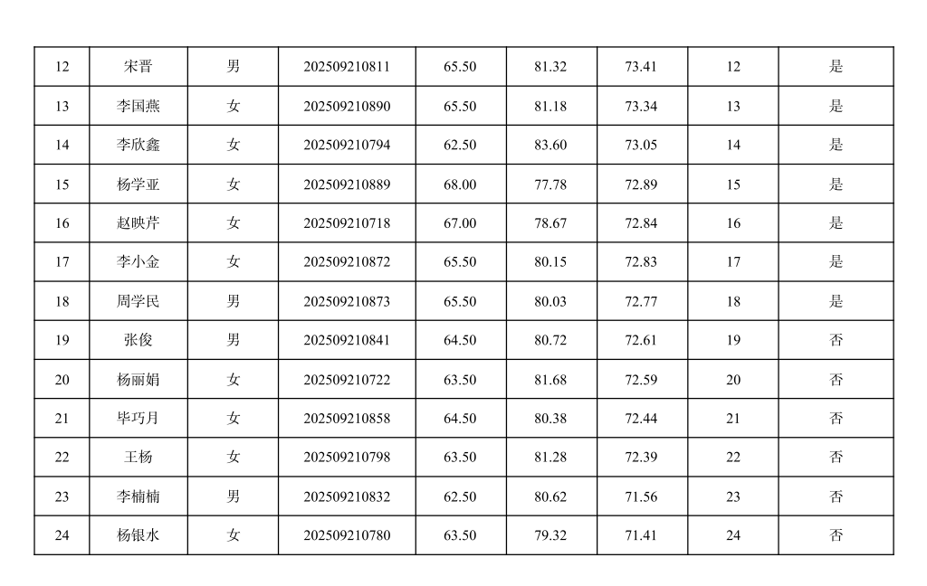 凤庆县2025-2026年度云南省大学生志愿服务西部计划地方项目志愿者招募面试相关工作已结束,根据(笔试成绩+面试成绩)×50%计算,现将综合成绩及体检事宜公告如下: