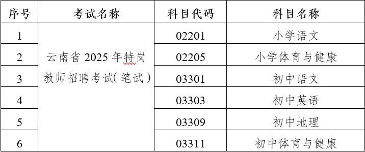 云南省2025年特岗教师招聘考试(笔试)将于7月12日上午举行,以下6门课程使用专用答题卡,其余均使用通用答题卡。