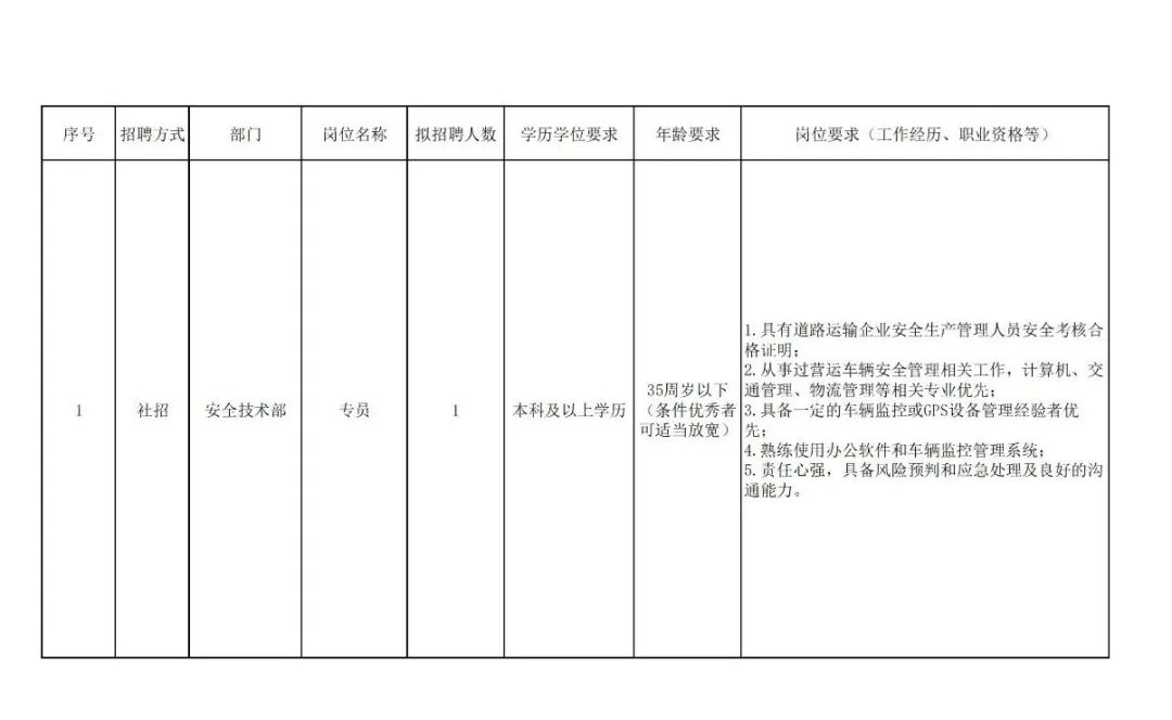 大理云旅旅游汽车有限公司计划招聘车辆监控管理员1名。具体工作岗位信息及条件详见附表:(点击大图查看)
