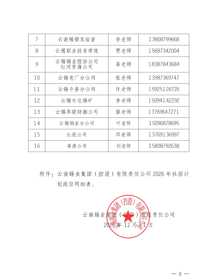 附件【附件:云南锡业集团(控股)有限责任公司2026年社招计划岗位明细表 .pdf】