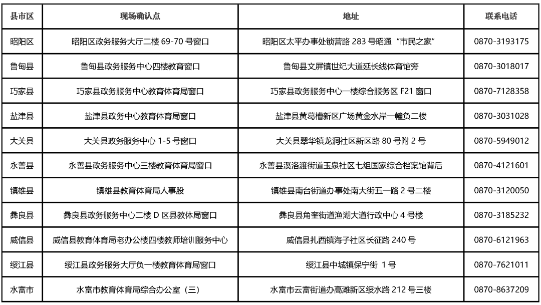 1.咨询地址及电话:网上申报完成后,申请人应及时查阅相应认定机构发布的认定公告,按规定时间和地点携带相关材料进行现场审核确认。2026年应届毕业生现场确认环节等事项,由毕业生所在学校统一安排。各县(市、区)咨询电话如下: