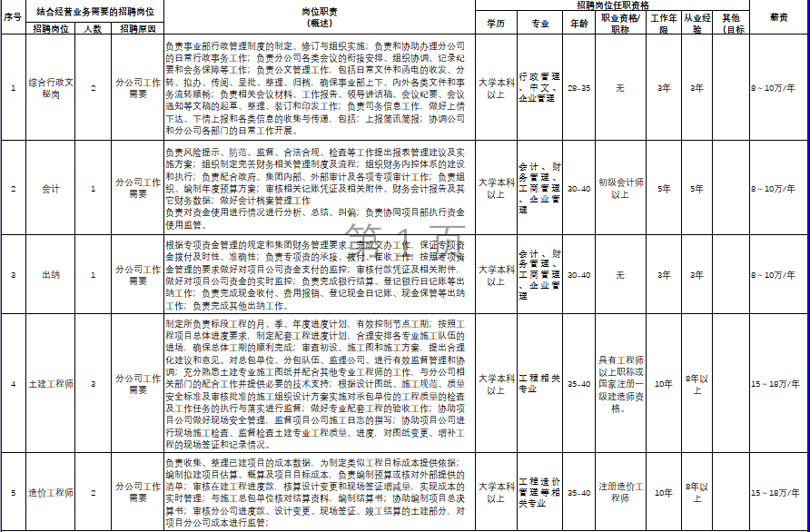 云南省劳动力中心市场有限公司根据云南省社会事业发展有限公司第一分公司用工需要,现面向社会公开招聘9 名劳务派遣制工作人员(综合行政文秘岗、会计、出纳、土建工程师、造价工程师),录用后派遣到云南省社会事业发展有限公司第一分公司工作。