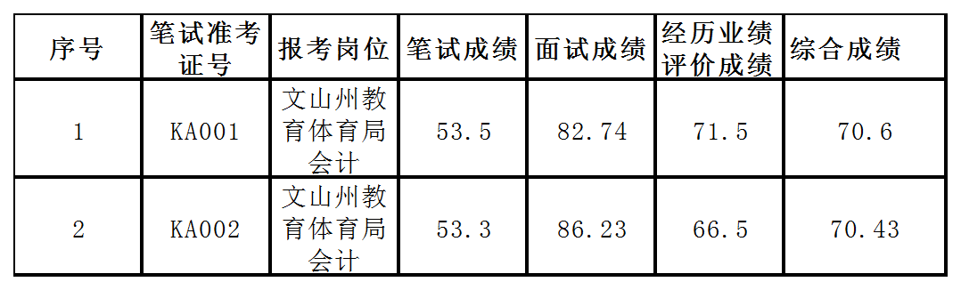 文山州教育体育局2020年公开遴选公务员综合成绩公布