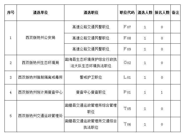 西双版纳州州级机关(单位)2021年公开遴选公务员(参照公务员法管理人员)报名工作已于2021年4月2日18时结束。根据《西双版纳州州级机关(单位)2021年公开遴选公务员(参照公务员法管理人员)公告》笔试开考比例规定,现决定取消以下遴选职位: