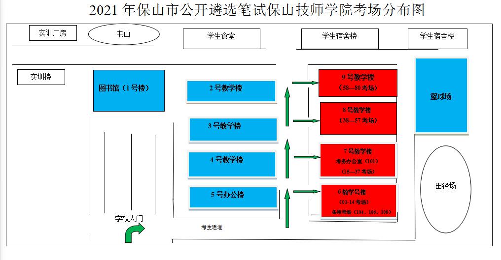 地址:保山市隆阳区永盛街道大堡子社区青堡路与堡城南路交会处,考生可乘坐7路、8路、10路、13路、25路公交车到达,考生由南门进入考场。