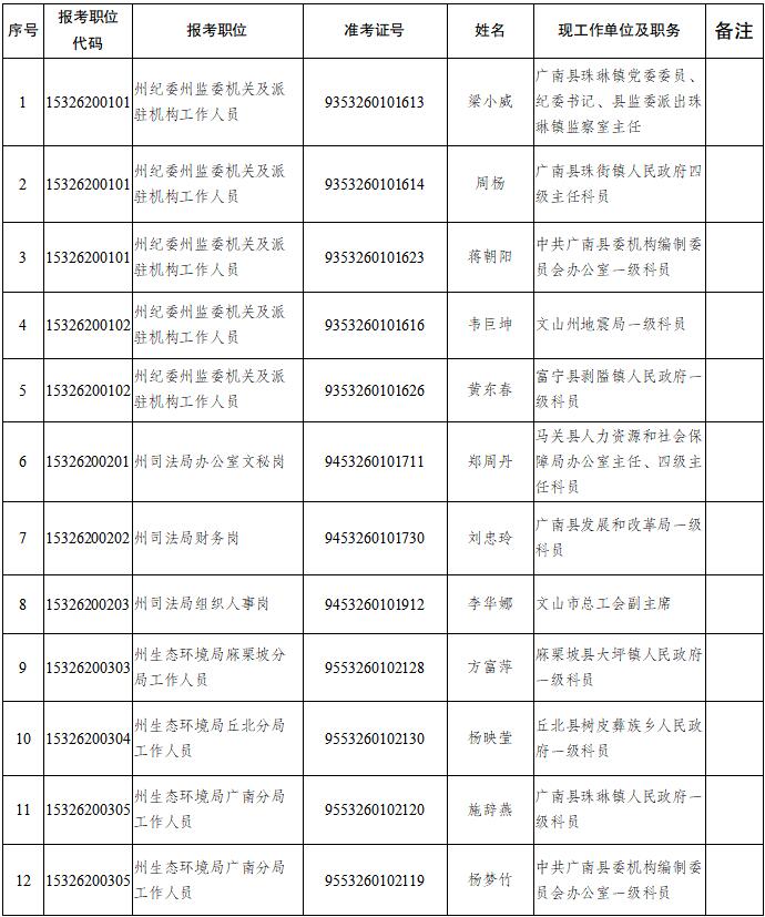 2021年文山州州级机关统一公开遴选公务员拟遴选人员公示