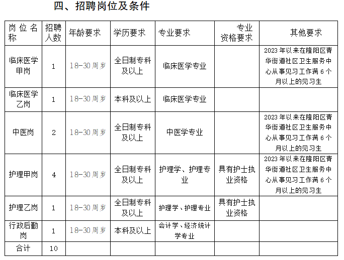 隆阳区青华街道社区卫生服务中心2024年公开招聘编外人员公告