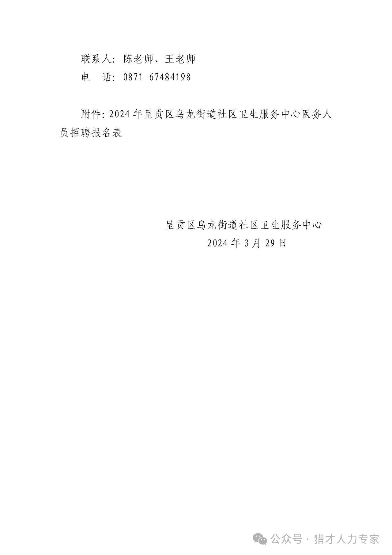 呈贡区乌龙街道社区卫生服务中心2024年招聘编制外工作人员公告