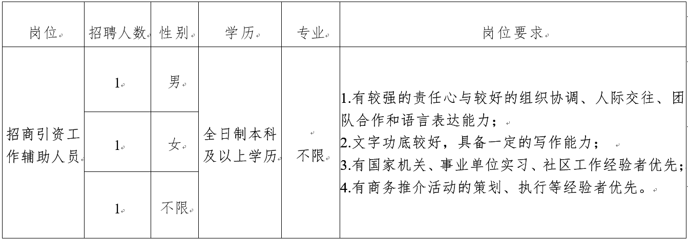 本次招聘招商引资工作辅助人员3人,招聘岗位及要求为: