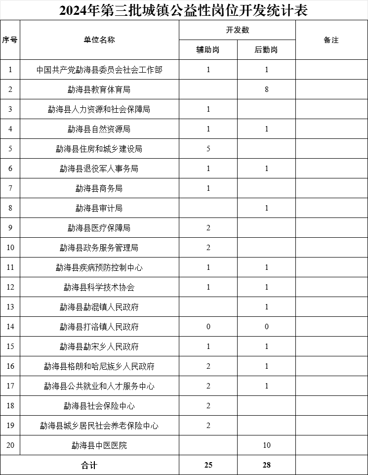 招聘岗位53个。具体招聘岗位数量详见《勐海县2024年第三批城镇公益性岗位开发统计表》。
