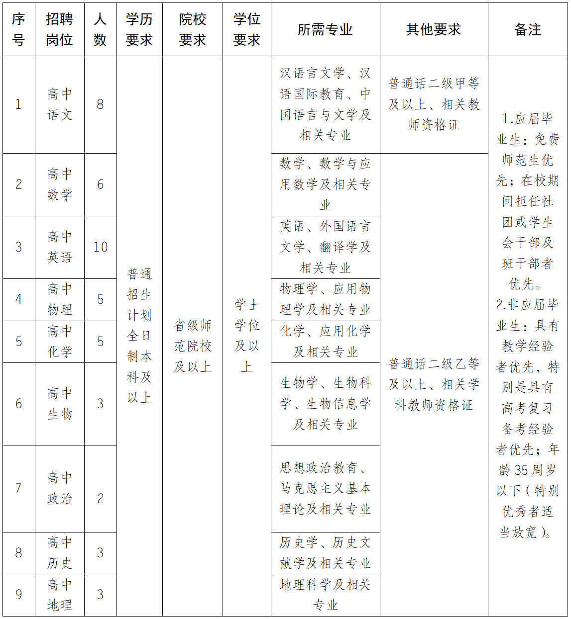 4.具有教育教学经验,特别是高考复习备考经验者,可直接电话联系面谈。