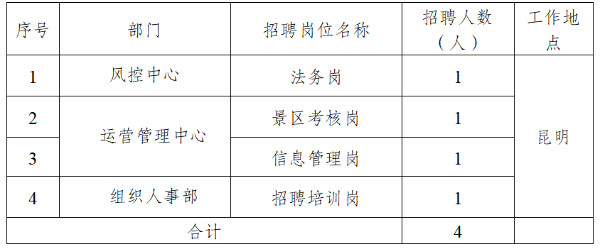 (一)云南山海遊旅游集团有限公司招聘岗位需求