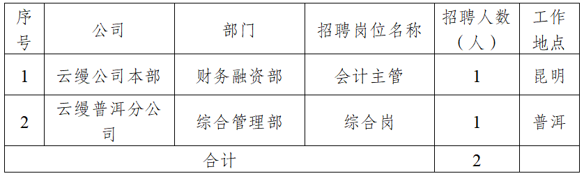 (二)云南云缦汽车旅游投资有限公司招聘岗位需求