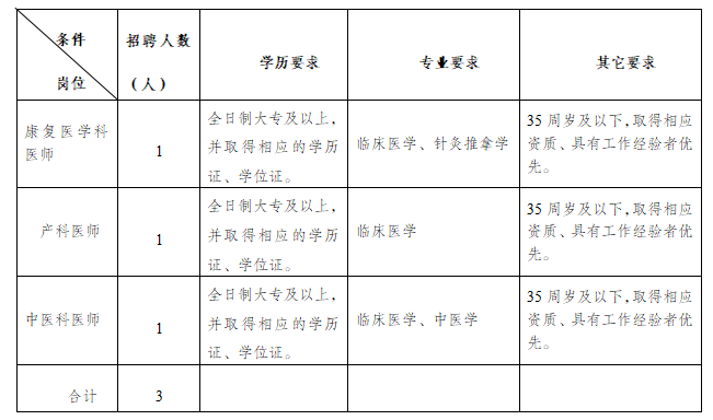 为加强医院人才队伍建设,满足工作需要,结合医院实际经医院研究,决定面向社会公开招聘合同制聘用人员3名,现将相关事宜公告如下: