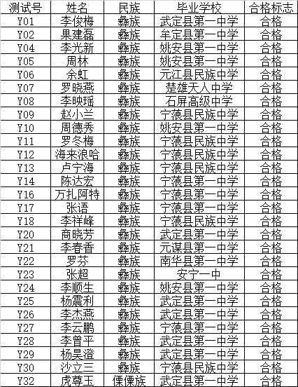 2015年西南民族大学中国少数民族语言(彝语)口语测试合格名单公示