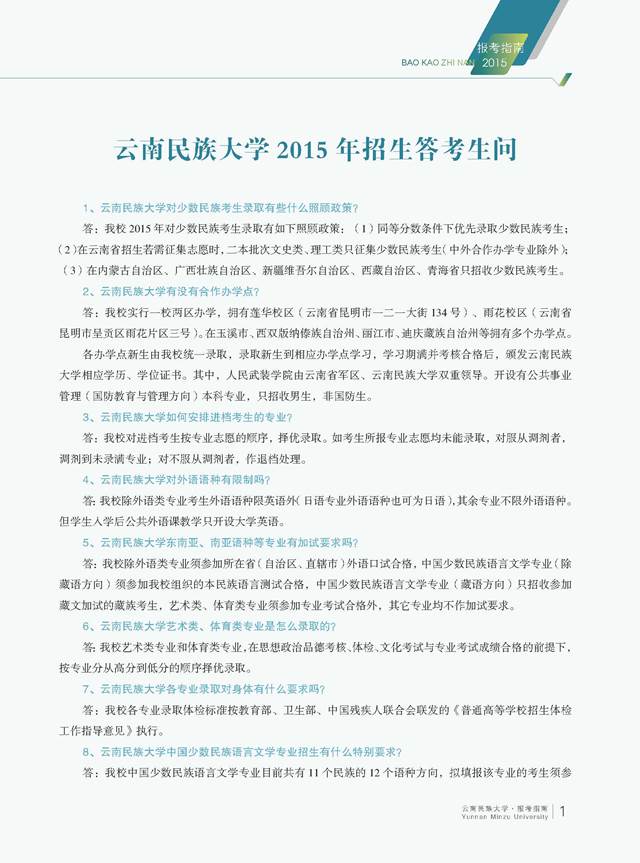 云南民族大学2015年招生答考生问