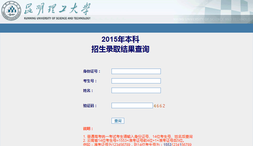 昆明理工大学2015年本科招生录取结果查询